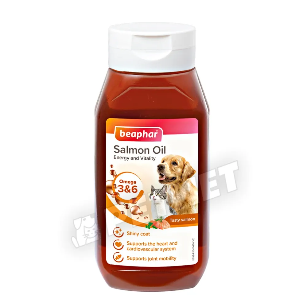 Beaphar Salmon Oil tengeri lazacolaj – A Beaphar északi tengeri lazacolaj nagy mennyiségben tartalmaz omega 3 (24%) és omega 6 (6%) zsírsavakat, amelyek nagyon jó hatással vannak a szív- és érrendszerre. Ezen felül a lazacolaj fogyasztása növeli a kutyák teljesítőképességét.