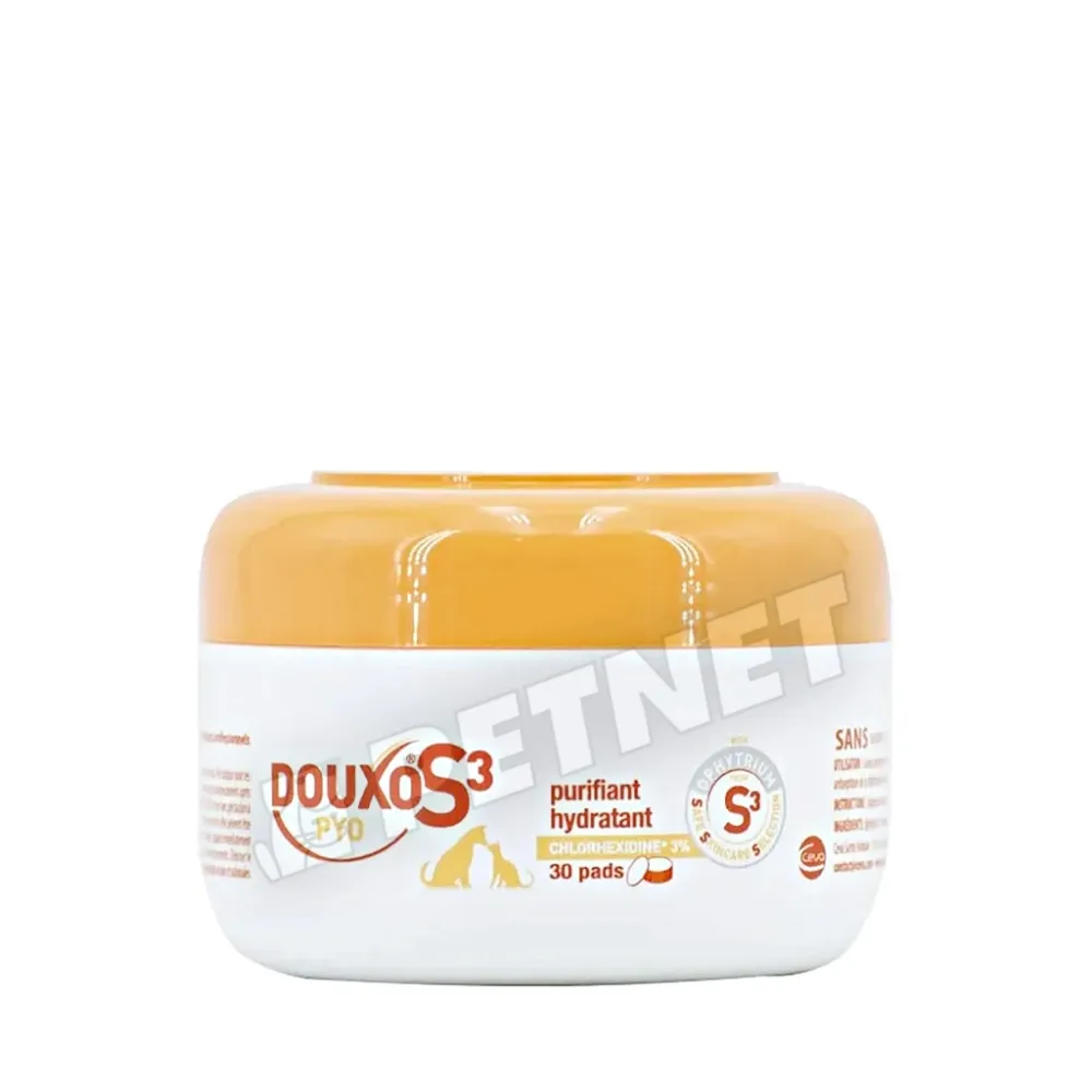 - Hidratálja a bőrt és erősíti a bőr barriert: fertőtlenítő hatású termékek ismételt alkalmazása a bőr kiszáradásához vezethet. A Douxo® S3 Pyo vattakorong összetevőit kifejezetten úgy állítottuk össze, hogy a fertőtlenítő hatás mellett hidratálják is a bőrt. Helyreállítja a bőr barriert is, ami megvédi kedvencedet a káros külső hatásoktól.