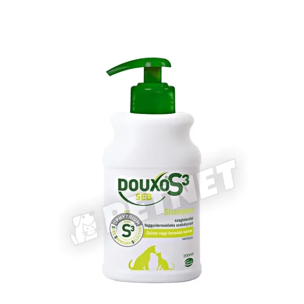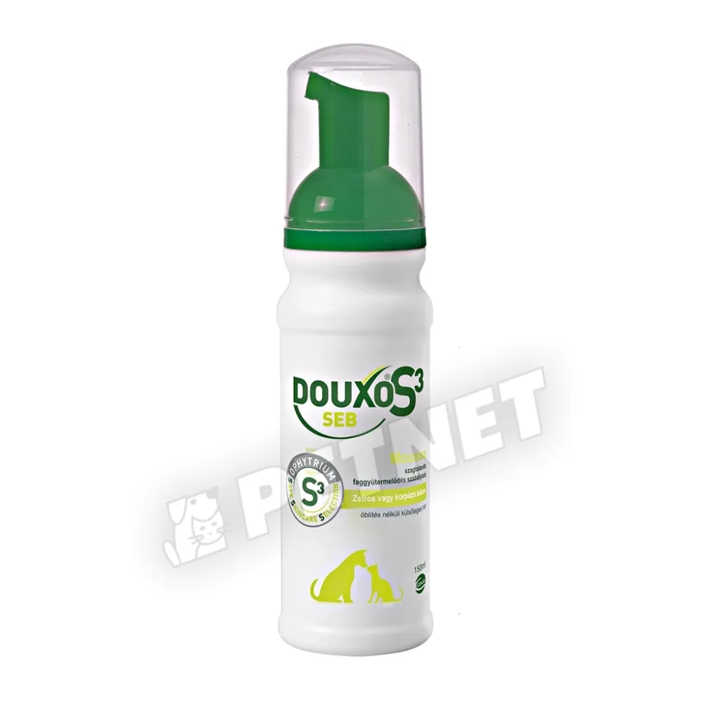 • A Douxo® S3 Seb Hab egy külsőleges hab kutyák és macskák számára zsíros vagy korpázó (szeborreás) bőr kiegészítő kezelésére. A seboliance faggyútermelést szabályozó hatásának köszönhetően csökkenti a korpásodást, a túlzott faggyútermelést és a kellemetlen szagokat, emellett hidratáló hatású és segít fenntartani a bőr ökoszisztémáját.