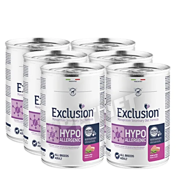 Exclusion Hypoallergenic Vension & Potato – Teljes értékű diétás eledel, melyet kifejezetten a tápanyag-intoleranciával küzdő felnőtt kutyák számára fejlesztettek ki. Fő célja az összetevőkkel és tápanyagokkal szembeni intolerancia tüneteinek csökkentése.