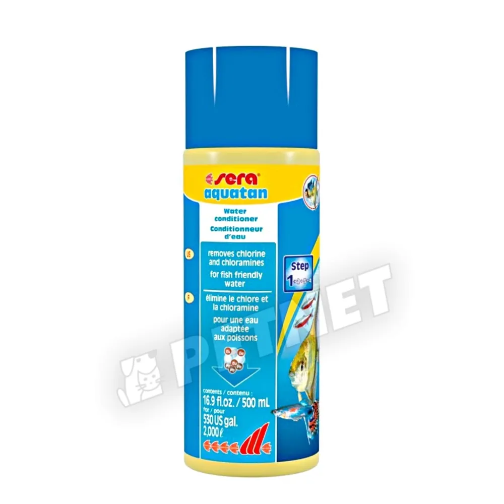 Sera Aquatan - A sera aquatan tisztítja a vizet, azonnal megköti a káros nehézfémeket és semlegesíti a feloldott sókat, valamint az agresszív klórt. Védi a halak nyálkahártyáját az értékes B-vitamin-komplex, valamint a bőrvédő kolloidok által. A Sera Aquatan ideális a stressz megszüntetéséhez a halak szállítása és telepítése során.