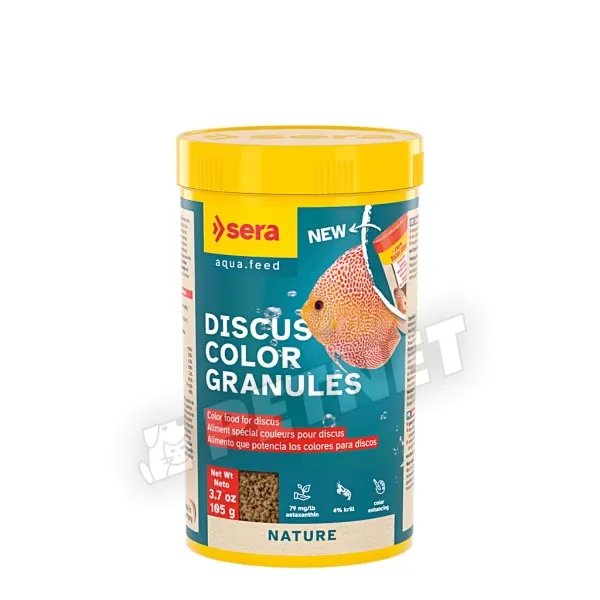 Granulált táp a diszkoszhalak különleges igényeihez igazított tápértékkel. Lassan süllyedő táp, így igazodik a fajta természetes táplálkozási szokásaihoz. Csíramentes, így nem áll fenn a fertőzés veszélye, mint a fagyasztott eledeleknél. Piros színű granulátum.