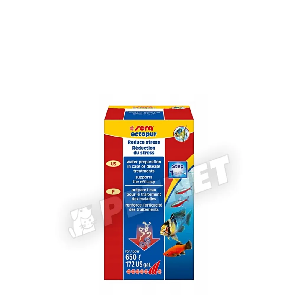 Sera Ectopur - Gomba és ektoparaziták megelőzésére és legyőzésére az édes-és tengervízben. A Sera ectopur ideális a sera gyógyszerekkel való kezelés támogatására. 5g Sera ectopur adása 50 liter vízhez kéthetente megszünteti a stresszt és megakadályozza az oxigénhiányt.