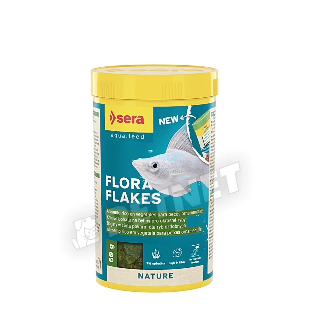 Sera Flora lemezes díszhaleleség – Növényi lemezestáplálék spirulinával a növényevő halak, harcsák (pl. Plecostomus), elevenszülő fogaspontyok, Malawi-és Tanganyika-tavi színes sügérek, (pl. Tropheus), valamint algaevők számára. Ezeket a fajokat a Sera Flora és a Sera Spirulina Tabs termékekkel, mint fő táplálékkal kell etetni. A fajnak megfelelő táplálás erősíti a halak ellenálló képességét.