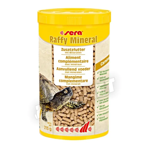 Sera Raffy Mineral Carnivore – Energiában gazdag táplálék teknősöknek és más hüllőknek. A sera raffy Mineral valamennyi fontos vitamint és aminosavat tartalmaz. Az úszóképes pelletek kalciumban és ásványi anyagokban gazdagok. Prémium minőségű eleség Németországból.