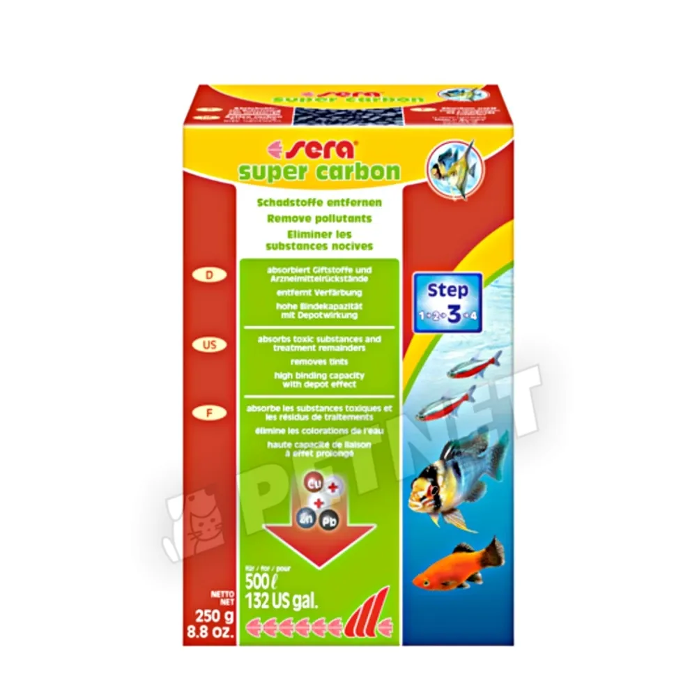 Sera Super Carbon gyorsan és megbízhatóan semlegesíti az akváriumvízben lévő méreg és színező anyagokat. Használatával a víz sárga elszíneződése megszűnik és kristálytiszta lesz. A Sera Super Carbon nem befolyásolja az akváriumvíz pH-értéket, valamint foszfát és nitrát-mentes.