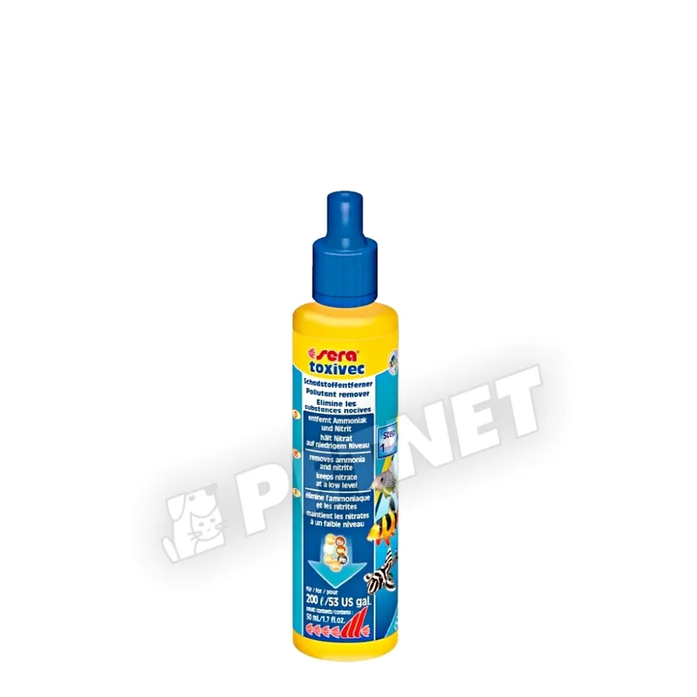 Sera Toxivec – A Sera Toxivec azonnal eltávolítja a halak számára káros anyagokat az akváriumvízből, mint pl. a nitrit, ammónia, klór és klóraminok, az akvárium vizéből. Megelőzi az algák növekedését és csökkenti a vízcserék számát is.