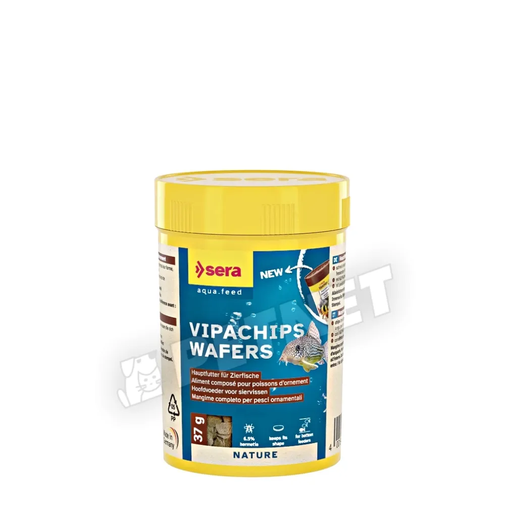 Sera VitaChips Wafers chips alakú díszhaleleség – A Sera Wels-Chips egy új táplálék specialitás, ideális minden olyan aljzatlakó hal számára, melyek nem kizárólag vegetáriánusan élnek. Így a Sera Vipachips alkalmas, pl. páncélos harcsák és botiák etetésére is.