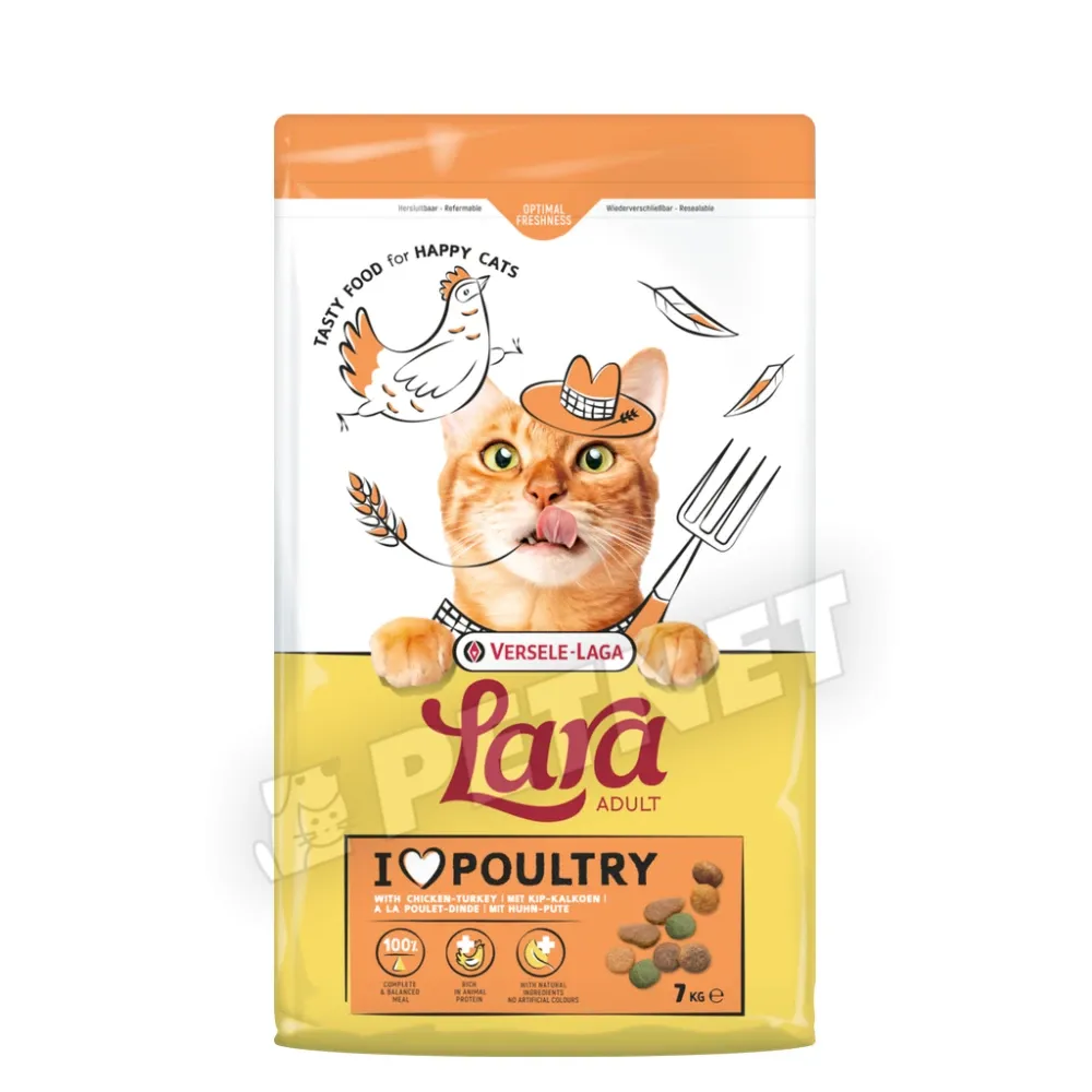 Versele-Laga Lara Adult Turkey Chicken – Teljesértékű száraz eledel felnőtt macskák számára, 12 hónapos kortól. Csirke és pulykahúsos ízesítéssel.