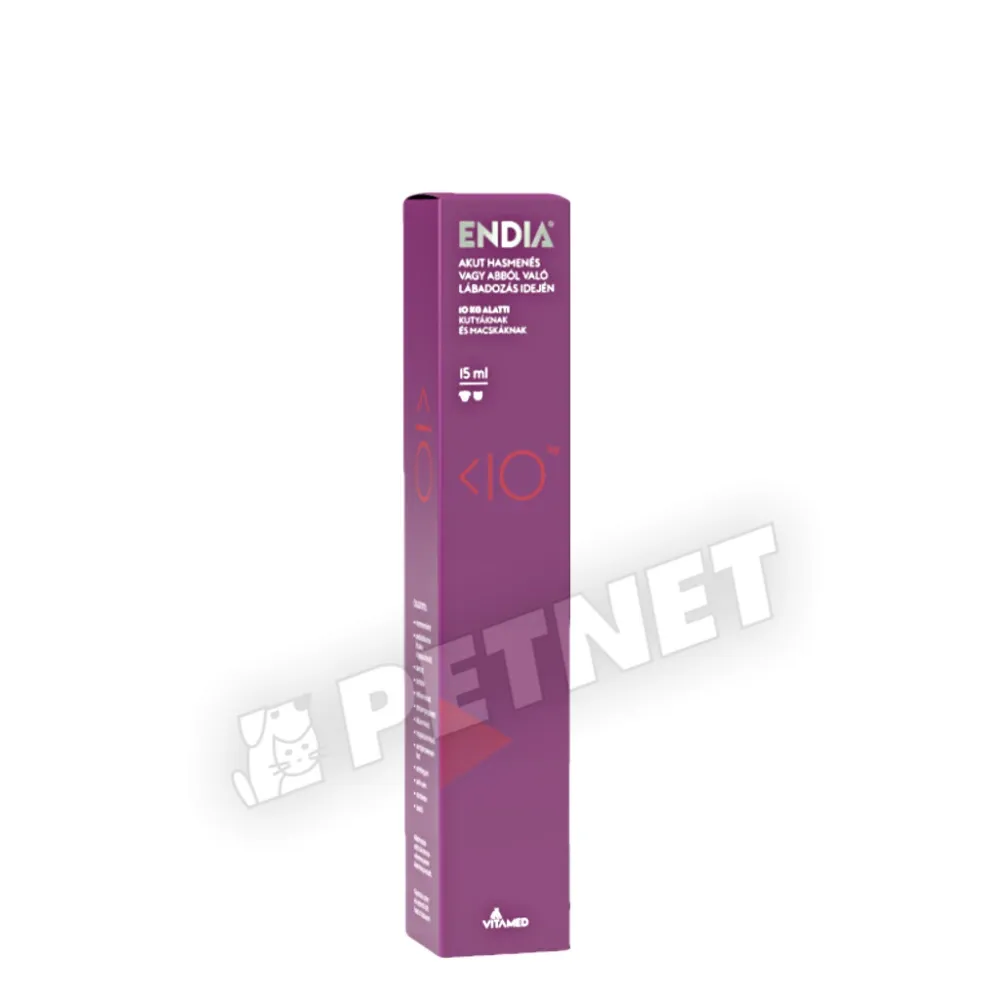 Az Endia egy komplex összetételű, szájon át adható paszta kutyák és macskák hasmenésére. Megköti a káros anyagokat, védi a bélnyálkahártyát, pótolja a hasmenéssel keletkező elektrolit- és energiaveszteséget, valamint a hasznos bélbaktériumokat.